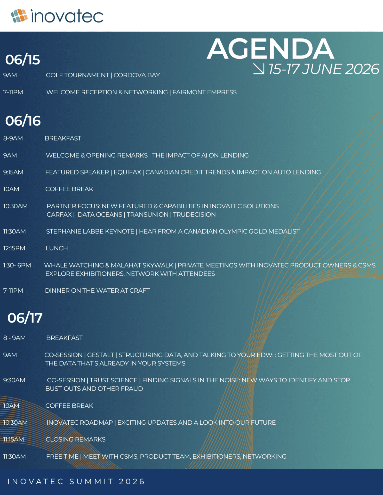 More details to come but you can expect all the classics of an Inovatec Summit, with some west coast magic!